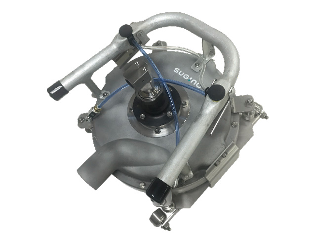 ノズルヘッドが内部で高速回転することにより、ハンドルを握り、押し当てるだけで高効率な洗浄・はくり・コンクリートの目粗しが行えます。広い面を一度に処理でき、さらに専用アタッチメントを使用することで出隅部にも対応可能です。